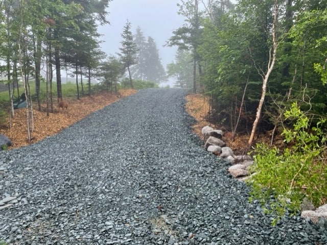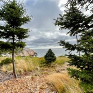 This gently sloping property evokes an isolated coziness as it is nestled into the protective cove of Tribune Head. The views focus on this glorious rock face, which provides shelter from the north winds, reflects light and warmth from the sun and is a constant source of natural beauty. The wide Atlantic Ocean, with its views of ships and seabirds, is the backdrop for Tribune Head.